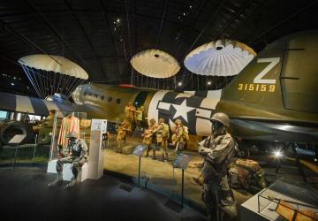Découvrez tout d'abord l'Occupation allemande, ses restrictions et ses règles, l'atmosphère anxiogène de la France de l'époque, avant de faire un grand bond au dessus de l'Atlantique, pour tout apprendre de la naissance et de la préparation des parachutistes américains pour le Jour J. L'occasion d'admirer un authentique avion C-47 qui a largué des soldats de la 101è division aéroportée au-dessus de Sainte-Mère-Eglise. Après quoi vous pourrez témoigner de l'âpreté des combats auxuquels ces soldats ont pris part en Normandie, et le lourd tribut que l'armée américaine comme les civils normands eurent à payer suite à la fin des affrontements. Enfin, dans le nouveau bâtiment WACO inauguré en 2024, vous apprendrez enfin tout sur ce pan trop méconnu des opérations aéroportées de l'époque: les missions de planeur, au travers de 5 salles, avec en point d'orgue l'authentique planeur du musée et sa nouvelle scénographie saisissante de réalisme!